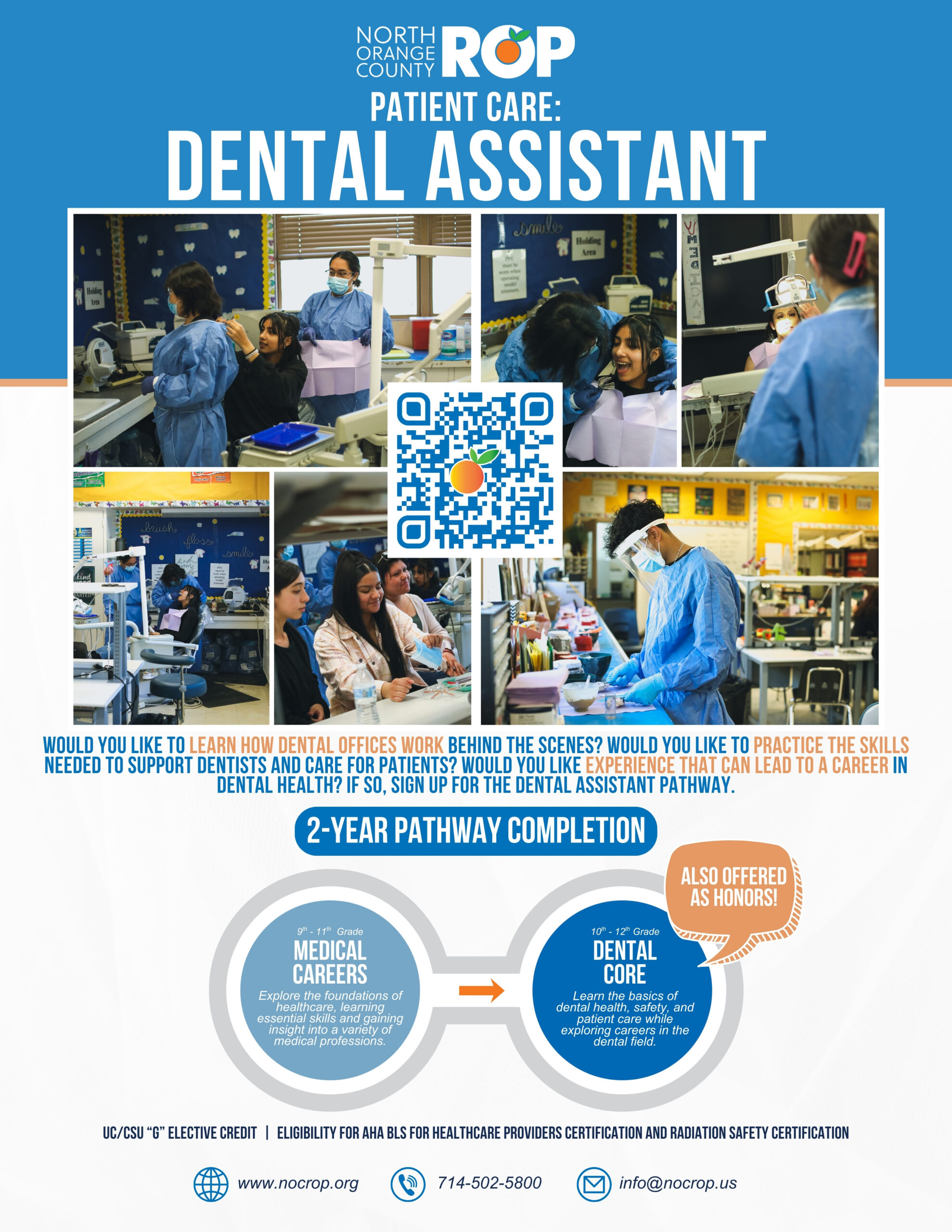 This pathway prepares students for entry-level dental assisting roles and continued education in dental or healthcare-related programs. Students may also have opportunities to prepare for dental assistant or healthcare-related certifications that support career readiness and postsecondary options.
