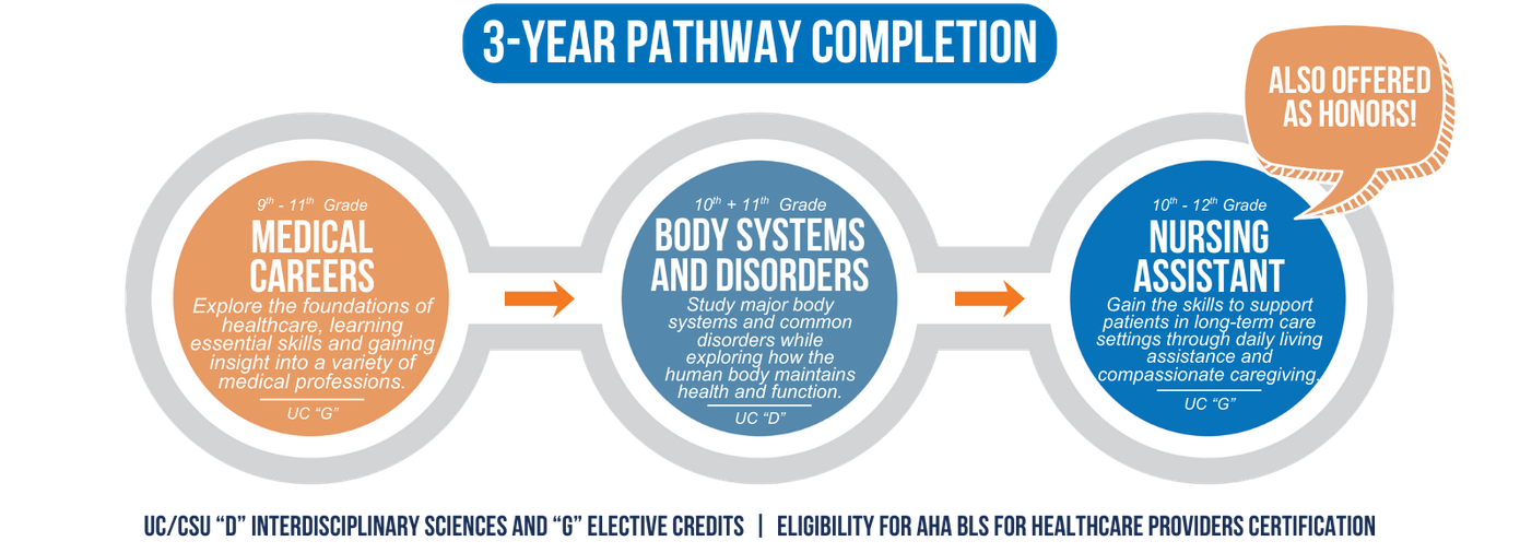 This pathway supports preparation for entry-level patient care roles and continued education in nursing or healthcare services. Students may also have opportunities to prepare for nurse assistant, CPR, or first aid certifications that strengthen career readiness in caregiving and healthcare fields.