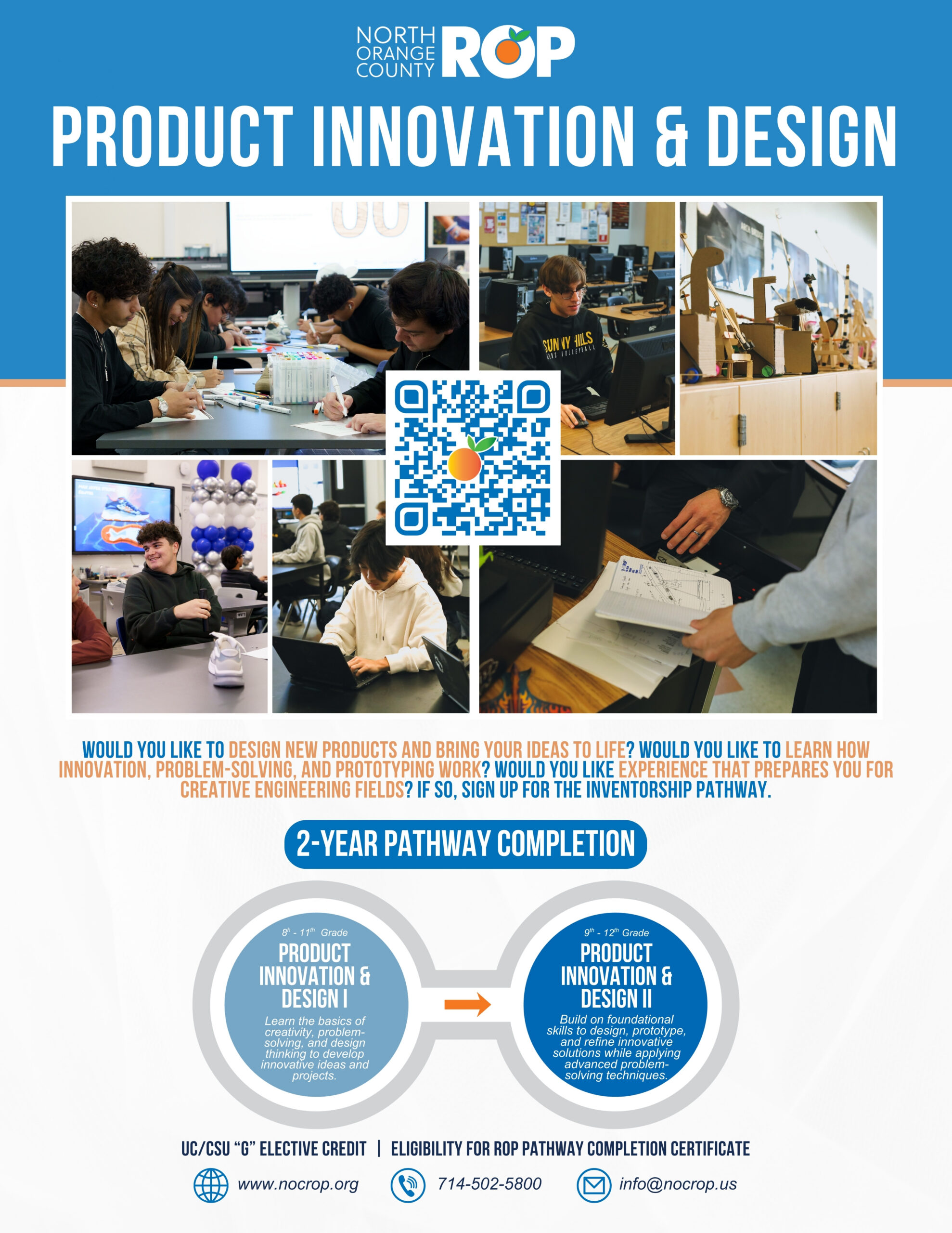 This pathway supports preparation for careers in product design, innovation, entrepreneurship, and related business or design fields. It also provides a strong foundation for college programs in business, design, engineering, or entrepreneurship. Students may have opportunities to prepare for design or entrepreneurship-related certifications that strengthen career readiness.